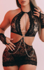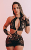 Deixe-se envolver pelo feitiço da paixão com a provocante 'Feiticeira Ardente'. Confeccionada em rendão e renda, é um convite para mergulhar em um reino de sedução intensa. O vestido possui um detalhe intrigante em fita na parte de trás que cria uma ilusão de revelação e esconde o suficiente para deixar a imaginação correr solta. Os detalhes em argolas e correntes adicionam um toque de ousadia, conferindo à fantasia um toque misterioso e provocante. As amarrações nas costas e no pescoço oferecem um ajuste perfeito, permitindo que abrace cada curva com perfeição, enquanto a calcinha fio complementa o conjunto, adicionando um toque sensual. As luvas com dedinho, acrescentam um elemento de sofisticação, convidando ao toque e à exploração. Vista-se com a 'Feiticeira Ardente' e embarque em uma jornada de prazer encantador, uma experiência mágica que desperta os sentidos e celebra a sensualidade.