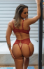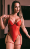 Body sem bojo e com aro feito em cirre e tule, possui alças com regulagem, as ligas e perneiras fixas no body, detalhe escrito "me fode" na parte de trás do fio, fundo da calcinha aberto.Â