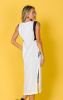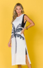 Transforme-se em uma visão tropical de elegância com nosso deslumbrante Vestido Longo Sem Manga, apresentando uma estampa localizada que é a mistura perfeita de cores e formas de coqueiros em preto e branco.