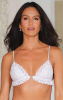 Soutien em renda floral delicada, com base em elástico sobreposto que une sustentação e leveza. O micro filete metálico contorna a renda com sofisticação, enquanto o aplique com cristal e as alças em strass adicionam um toque de brilho e glamour.