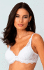 Esta lingerie é uma combinação de funcionalidade, beleza e conforto.Com bojo de cobertura que veste com perfeição ate o tamanho 48 com segurança e conforto. Todo em renda, tem o detalhe de sobreposição no inicio da alça e costas com detalhe de renda na modelagem que sobe ate as alças traseiras . Detalhe de fita elástica sobreposta na frente e alças com regulagem nas costas.