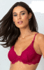 Esta lingerie é uma combinação de funcionalidade, beleza e conforto.Com bojo de cobertura que veste com perfeição ate o tamanho 48 com segurança e conforto. Todo em renda, tem o detalhe de sobreposição no inicio da alça e costas com detalhe de renda na modelagem que sobe ate as alças traseiras . Detalhe de fita elástica sobreposta na frente e alças com regulagem nas costas.