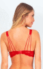 Sutiã com bojo e cós largo em renda e aro inteiro. Decote com bordado subindo até as alças largas de tecido silk glow com detalhes de três tiras fininhas elásticas nas costas com efeito vazado.