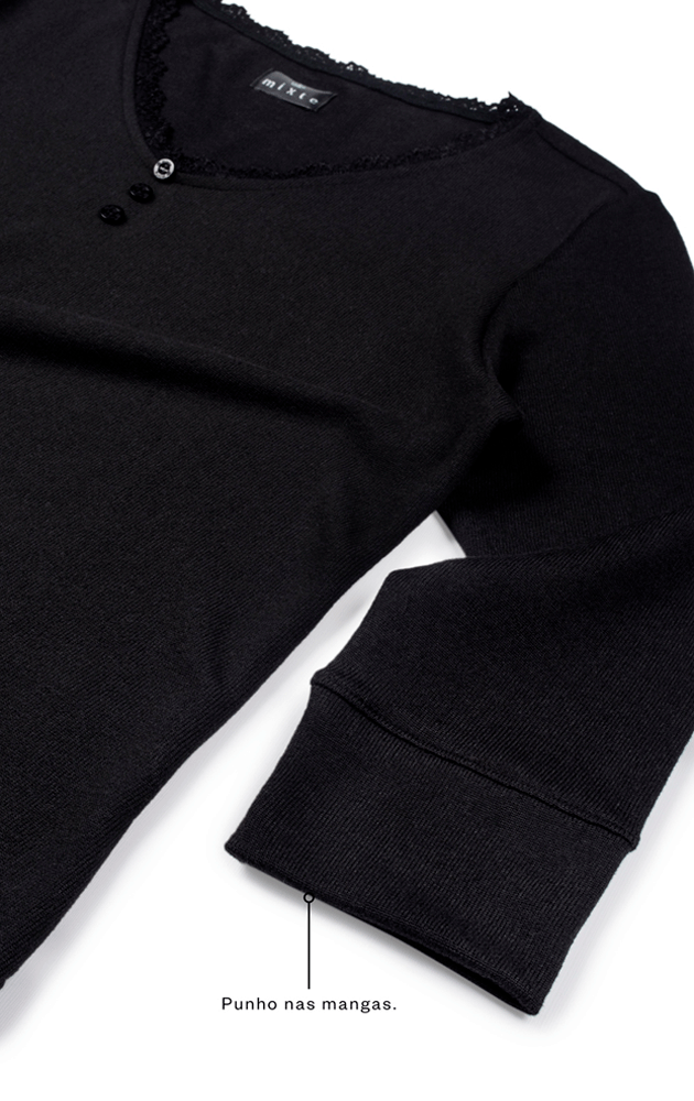 • Punhos nas mangas.