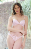 Esta tanga fio combina sensualidade e sofisticação com recortes estratégicos em renda na parte frontal. As laterais em renda se estendem até as costas, sobre um painel de tule transparente que revela a pele com sutileza. No centro, um aplique metálico banhado a ouro com cristal lapidado adiciona um toque de joalheria à peça.