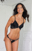 A frente combina renda sobreposta com tule nude nas laterais, criando um visual sofisticado e sensual. Atrás, o desenho em renda estilo asa delta realça as curvas e conta com uma abertura sutil e aplique de metal central para um toque luxuoso. A parte traseira em tule duplo, sem elástico, garante conforto excepcional.
