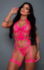 Espartilho com aro confeccionado em arrastão. Detalhe com tiras ajustáveis no bojo. Acompanha cinta liga da foto.