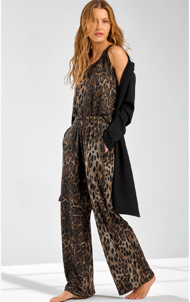 Conjunto Tricot Light 97% Poliéster , 3% Elastano. Acompanha: Cardigan, calça e regata.