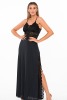 Camisola longa em poliamida com renda. Fendas na lateral
