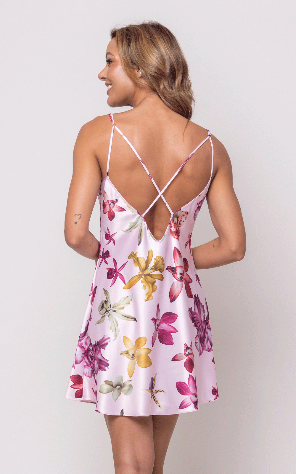 Camisola em cetim estampado, com estampas exclusivas.