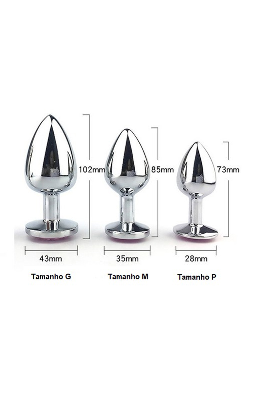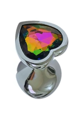 Plug anal QQ1044 de luxo em aço inoxidável possui forma cônica e um detalhe extremamente lindo de pedra lapidada em formato de coração na sua base.
