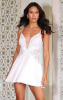 Baby doll sofisticado, que une a delicadeza da transparência ao charme da fluidez. O corpo em renda revela desenhos intrincados que abraçam as curvas com leveza, enquanto o decote profundo sobre o tule cor da pele cria um efeito de ilusão sensual e elegante. A modelagem valoriza a cintura e projeta o busto com sofisticação, complementada pelas alças de strass que acrescentam um toque de luz. A partir da cintura, a saia em liganete se abre em caimento leve e solto, acompanhando o movimento do corpo. Uma peça que combina luxo, conforto e poder de sedução em um só design.