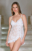 Peça que combina transparência, leveza e detalhes de luxo em perfeita harmonia, concebida para noites especiais de celebração.Confeccionado em Laise transparente, o tecido envolve o corpo com suavidade, enquanto a renda no busto forma um desenho estilo top que valoriza o colo, com base em renda que se estende até as costas, criando continuidade e elegância na peça.As alcas tem aplique de metal banhado a ouro e cristais .A renda desce pela frente do baby doll, formando uma abertura em curva na altura do quadril, que se movimenta com leveza e sensualidade Pequenos lacinhos completam o design.A string coordenada, confeccionada em Laise com traseiro em renda, aparece sutilmente sob o movimento da fenda, revelando-se com sensualidade.