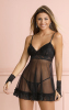 Baby doll com renda no busto, com forro de tule sem para transparência sutil.