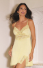 O liganete cria uma base fluida e confortável, enquanto a renda floral, trabalhada com filamentos prateados, ilumina delicadamente os contornos do desenho. O busto foi cuidadosamente modelado para um encaixe perfeito entre tecido e renda, oferecendo sustentação suave e realce elegante. Na parte frontal, a renda aplicada em formato descendente alonga a silhueta, conduzindo o olhar até o centro, onde um pingente de cristal adiciona um toque de luz. A fenda sutil na frente, finalizada com renda, garante sensualidade na medida certa. Nas costas, o decote profundo em efeito trançado combina ousadia e sofisticação, completando o design com impacto refinado.