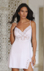 O liganete cria uma base fluida e confortável, enquanto a renda floral, trabalhada com filamentos prateados, ilumina delicadamente os contornos do desenho. O busto foi cuidadosamente modelado para um encaixe perfeito entre tecido e renda, oferecendo sustentação suave e realce elegante. Na parte frontal, a renda aplicada em formato descendente alonga a silhueta, conduzindo o olhar até o centro, onde um pingente de cristal adiciona um toque de luz. A fenda sutil na frente, finalizada com renda, garante sensualidade na medida certa. Nas costas, o decote profundo em efeito trançado combina ousadia e sofisticação, completando o design com impacto refinado.