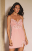 O liganete cria uma base fluida e confortável, enquanto a renda floral, trabalhada com filamentos prateados, ilumina delicadamente os contornos do desenho. O busto foi cuidadosamente modelado para um encaixe perfeito entre tecido e renda, oferecendo sustentação suave e realce elegante. Na parte frontal, a renda aplicada em formato descendente alonga a silhueta, conduzindo o olhar até o centro, onde um pingente de cristal adiciona um toque de luz. A fenda sutil na frente, finalizada com renda, garante sensualidade na medida certa. Nas costas, o decote profundo em efeito trançado combina ousadia e sofisticação, completando o design com impacto refinado.