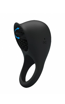 Anel Peniana em Silicone com estimulador de clitóris. 12 velocidade de balanço. Recarregável. Cor: Preta. Resistente a água.
