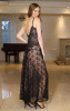 Com um um verdadeiro jogo de transparências e texturas, onde cada detalhe revela o equilíbrio perfeito entre leveza e luxo.Na parte da frente, o bordado se estende do ombro até abaixo da cintura, criando um desenho vertical alongado que valoriza as linhas do corpo. O tule invisível no centro dá a ilusão de pele à mostra, enquanto tiras cruzadas sobrepostas desenham o busto com sutileza.As costas, inteiramente em renda delicada até a cintura, revelam a pele com desenho sofisticado, destacando o contorno natural da silhueta.A saia em Laise transparente apresenta modelagem evasê, fluida e suave, permitindo que o tecido acompanhe o movimento do corpo com sensualidade.