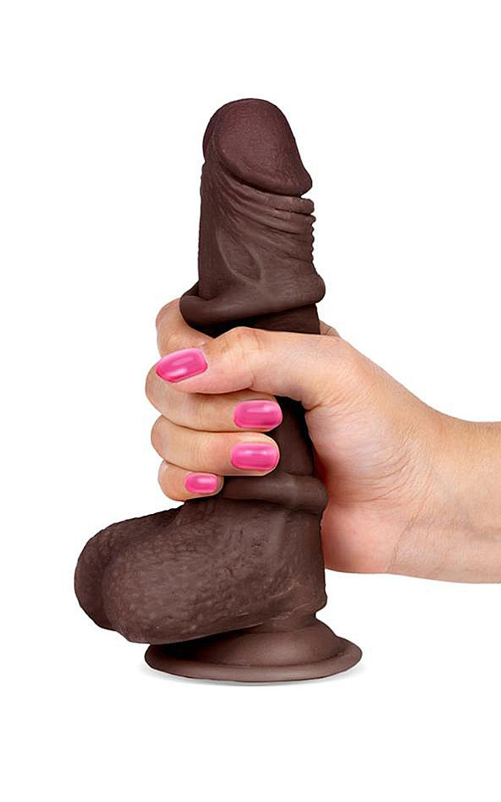 Prótese realística em formato de pênis dupla camada, confeccionado em PVC possui glande definida,