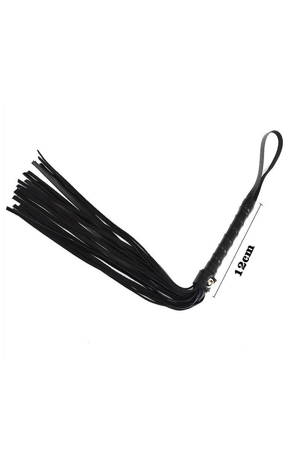 Chicote 39 cm de comprimento, cabo 15 cm de comprimento (medidas aproximadas).