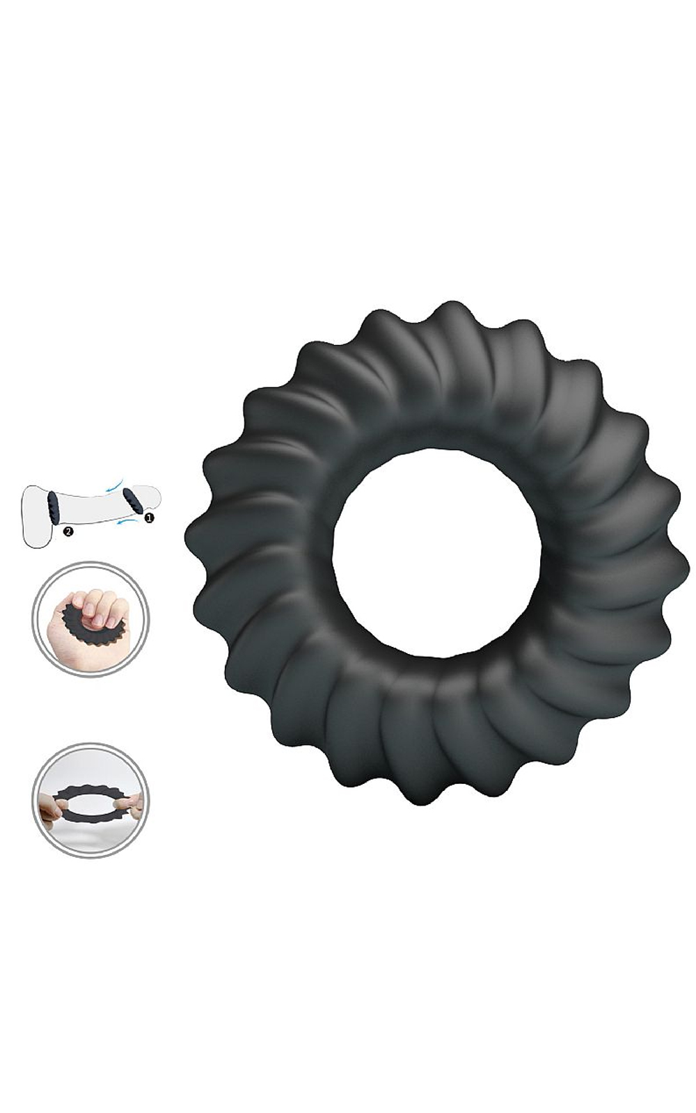 Anel peniano com textura ondular grande. Confeccionado em silicone é super flexível, adequando-se perfeitamente a você.