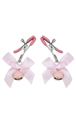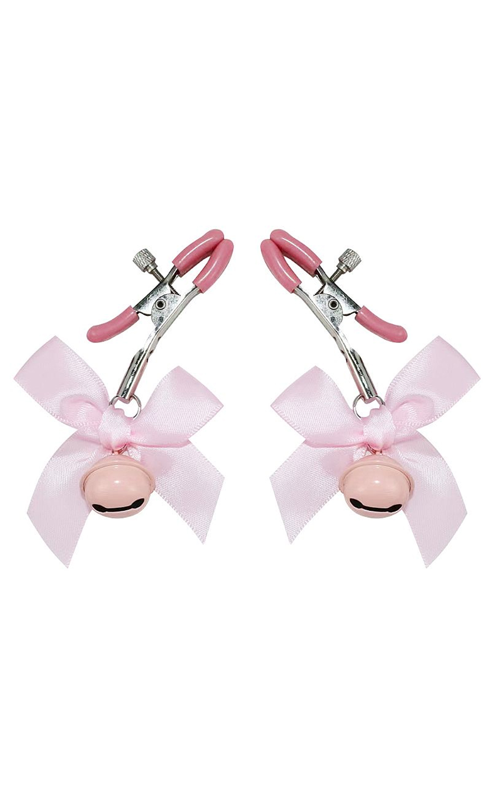 O prendedor de mamilos possui ajustes e guizo de metal.