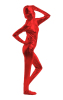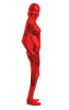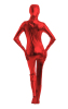 Macacão zentai vermelho brilhante totalmente fechado e com zíper nas costas.