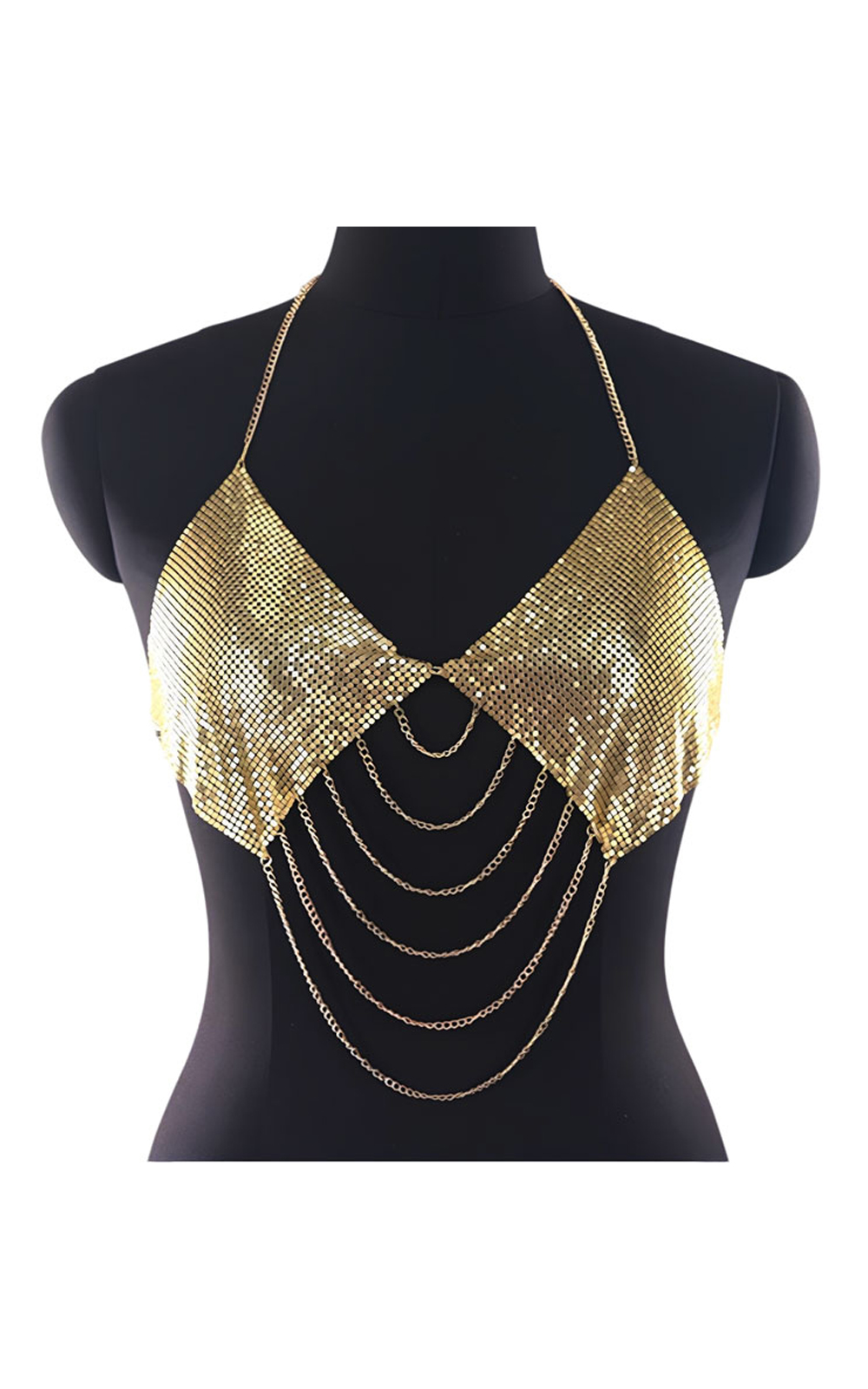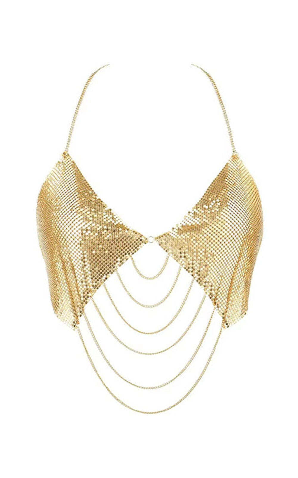 Top metalizado com correntes. Tamanho único. Material Metal.