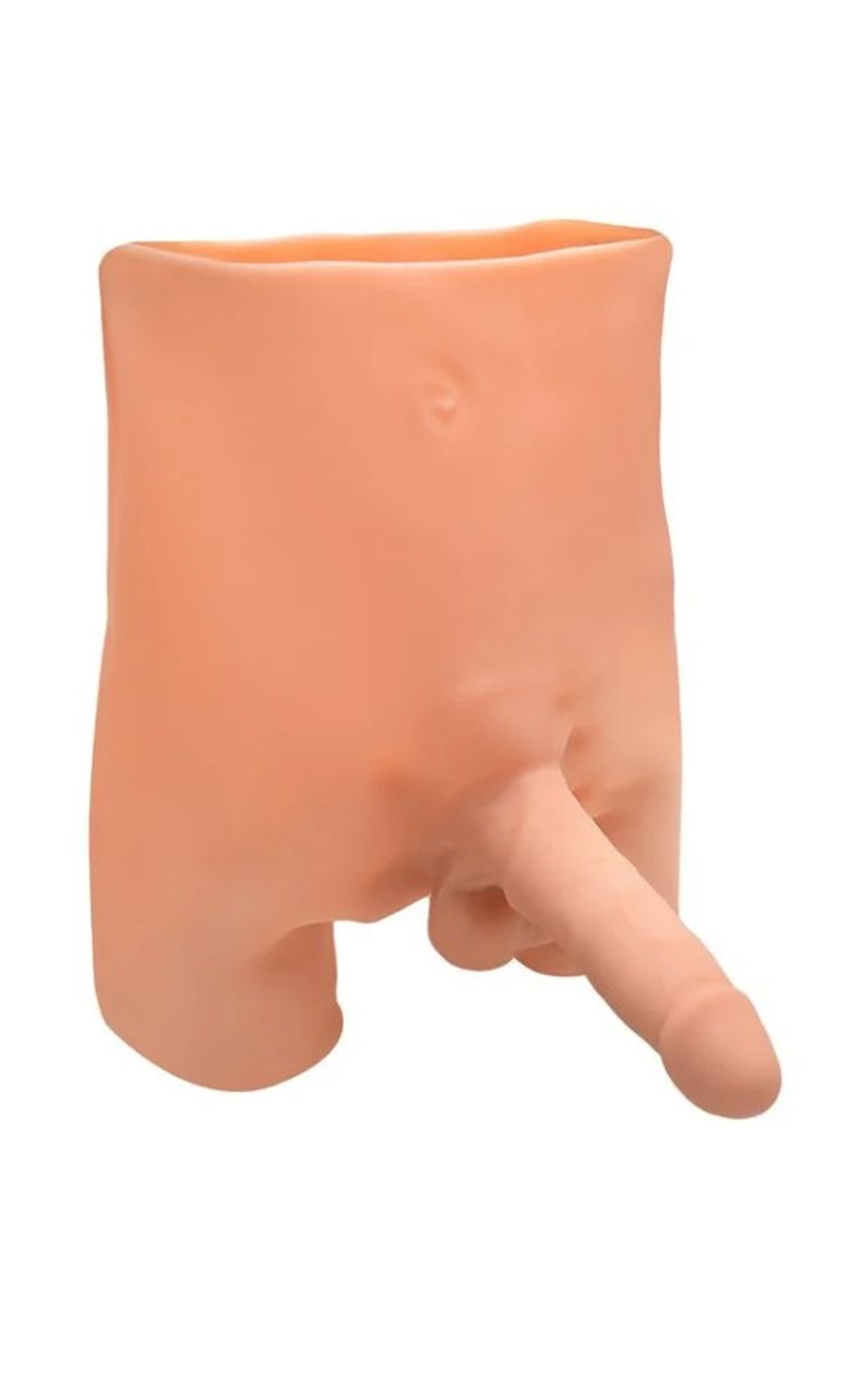 Short feito em silicone com pênis maciço acoplado meio oco em Cyber Skyn, pode ser utilizado como capa peniana para pênis pequeno, extremamente confortável e seguro para uma ótima penetração!